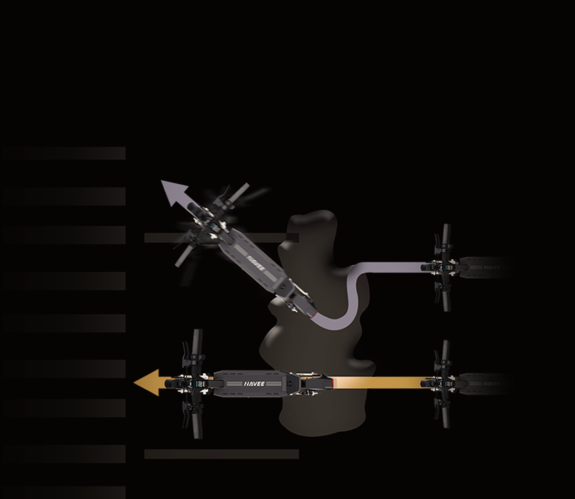 Seleziona tra Modalità Pedone, Standard e Sport tramite l'app NAVEE. In Modalità Sport, attiva Turbo per accelerare da 6 km/h a 25 km/h in soli 2.9 secondi, o Eco per una guida più fluida ed efficiente.